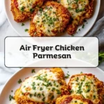 This Air Fryer Chicken Parmesan is everything you love about classic chicken parm—crispy cutlets, rich marinara, and gooey melted cheese—made lighter, quicker, and with way less mess. Juicy chicken breasts are coated in a crunchy Parmesan panko crust, air fried until golden, then finished with marinara and mozzarella for a comforting main dish that feels restaurant-worthy but is simple enough for busy weeknights. Save it with your easy dinner and dinner ideas favorites—this is a keeper when you need an easy recipe that’s family-friendly, full of flavor, and perfect for those nights when you just want reliable food ideas without spending hours in the kitchen.