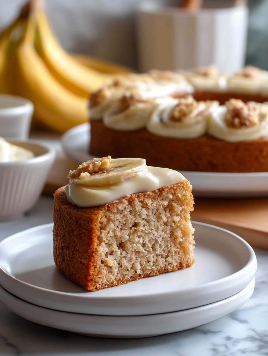 A simple vanilla frosting around the outside of the cake lets the banana filling stay the star while adding a classic bakery finish.