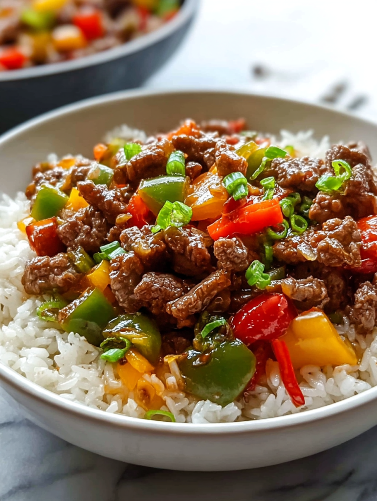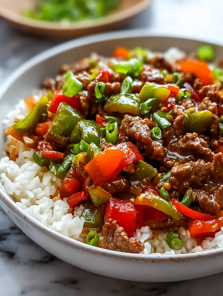 This Beef Pepper Rice Bowl is a hearty, flavor-packed meal that comes together quickly with ground beef, vibrant bell peppers, and perfectly cooked rice. It’s saucy, savory, and just the right amount of peppery heat, making it a comfort dish with bold personality. Ideal for busy weeknights or satisfying meal prep, it brings the cozy feel of a stir-fry right into your bowl.