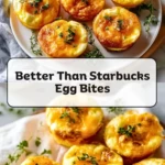 Skip the coffee shop line because these Better Than Starbucks Egg Bites are creamy, cheesy, savory, and incredibly easy to make at home. They are perfect for a quick breakfast, easy meal prep, healthy snack, brunch spread, and grab-and-go food ideas for busy mornings. With fluffy eggs, smoky bacon, and melted cheddar in every bite, this easy recipe brings café-style breakfast ideas right into your kitchen with simple ingredients and a soft, tender texture you will want to make again and again.