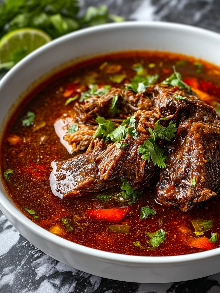 This dish isn’t just dinner—it’s an experience. The chile sauce is layered with earthy and savory flavors that come alive after hours of simmering. The beef is succulent and shreddable, soaking up every drop of that spicy, tangy magic. Perfect for cozy nights in, big family meals, or Sunday slow-cooking rituals, this birria recipe delivers both soul and flavor. Plus, it’s even better the next day.