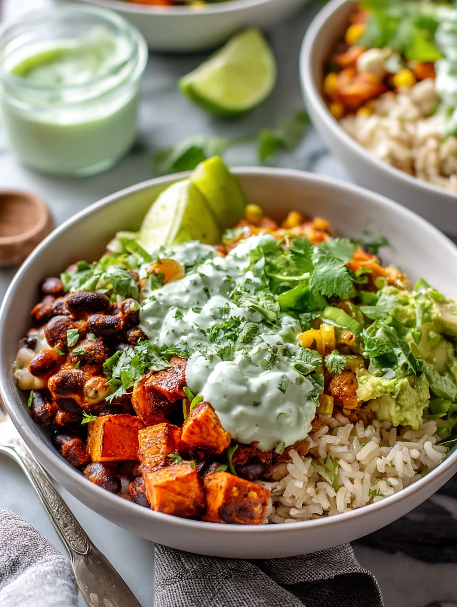 This recipe comfortably feeds 4 hungry people as a main dish, or up to 6 if you’re serving it alongside other sides or appetizers. Serve the bowls while the rice, beans, and roasted veggies are still warm—the contrast between the cozy base and the cool, creamy sauce is the best part.