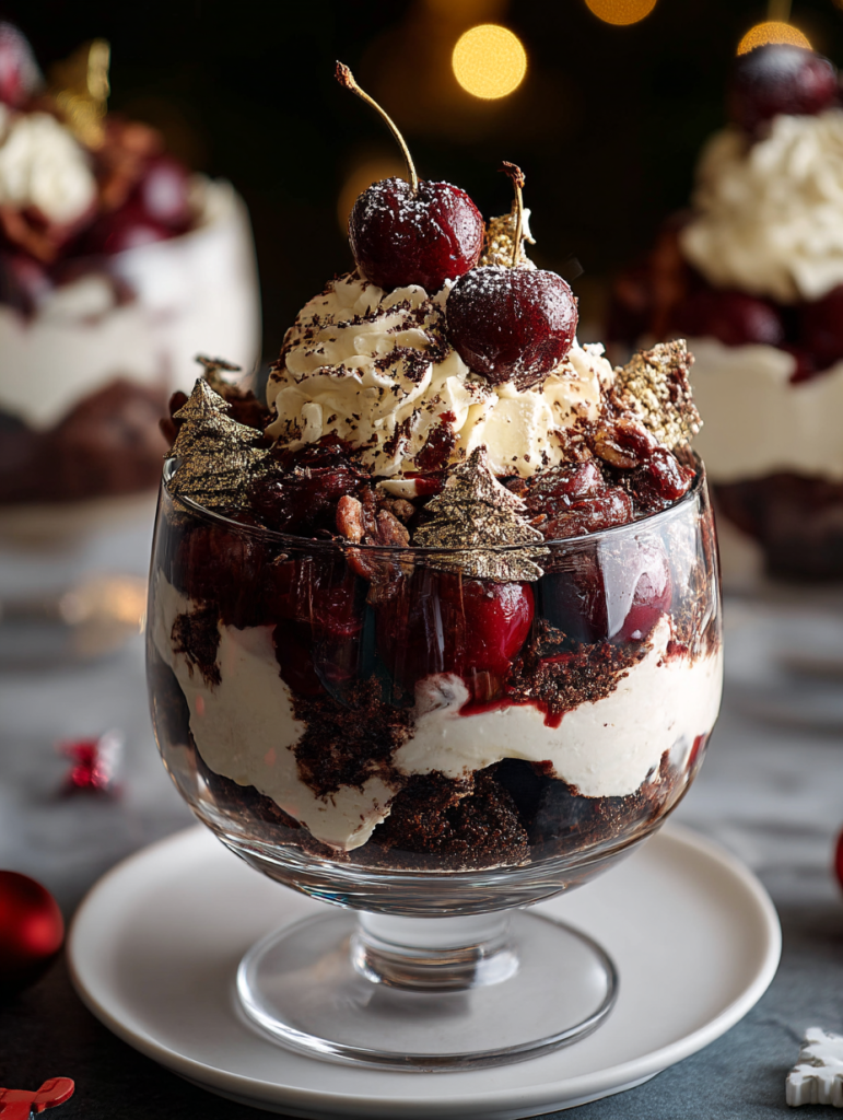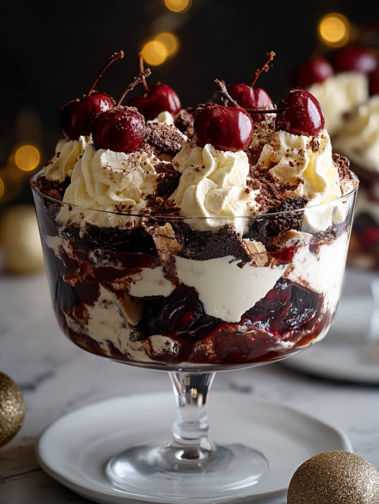 This Black Forest Trifle for Christmas is a show-stopping dessert that captures the festive spirit in every luscious layer. Rich chocolate cake, juicy cherries, silky whipped cream, and a touch of kirsch liqueur (optional) come together in one stunning trifle dish. It’s easy to assemble, gorgeous to present, and completely indulgent—everything a holiday dessert should be.