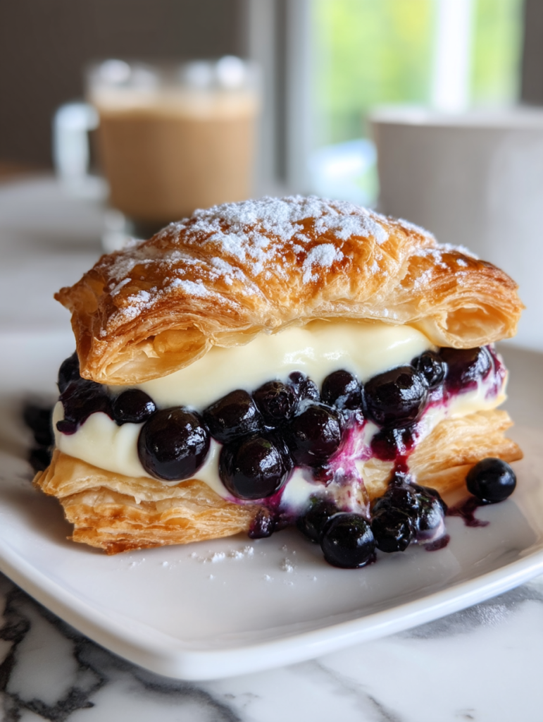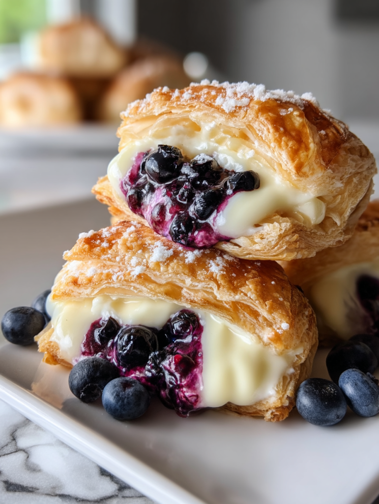 Buttery, flaky puff pastry envelopes a sweet, creamy blend of vanilla-kissed cream cheese and fresh, bursting blueberries. This Blueberry Cream Cheese Puff Pastry is golden and crisp on the outside, yet irresistibly rich and melty within – every bite delivers a balance of tangy fruit and luscious filling.