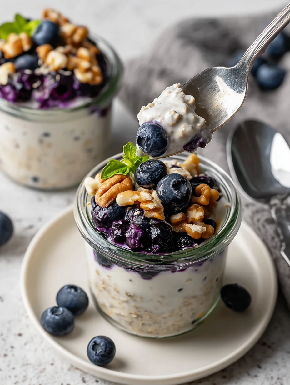 Creamy, fruity, and incredibly easy to prepare, these Blueberry Overnight Oats with Yogurt are your new favorite way to wake up to a nourishing breakfast. Packed with protein-rich Greek yogurt, juicy blueberries, and hearty oats, this chilled breakfast is as convenient as it is delicious.