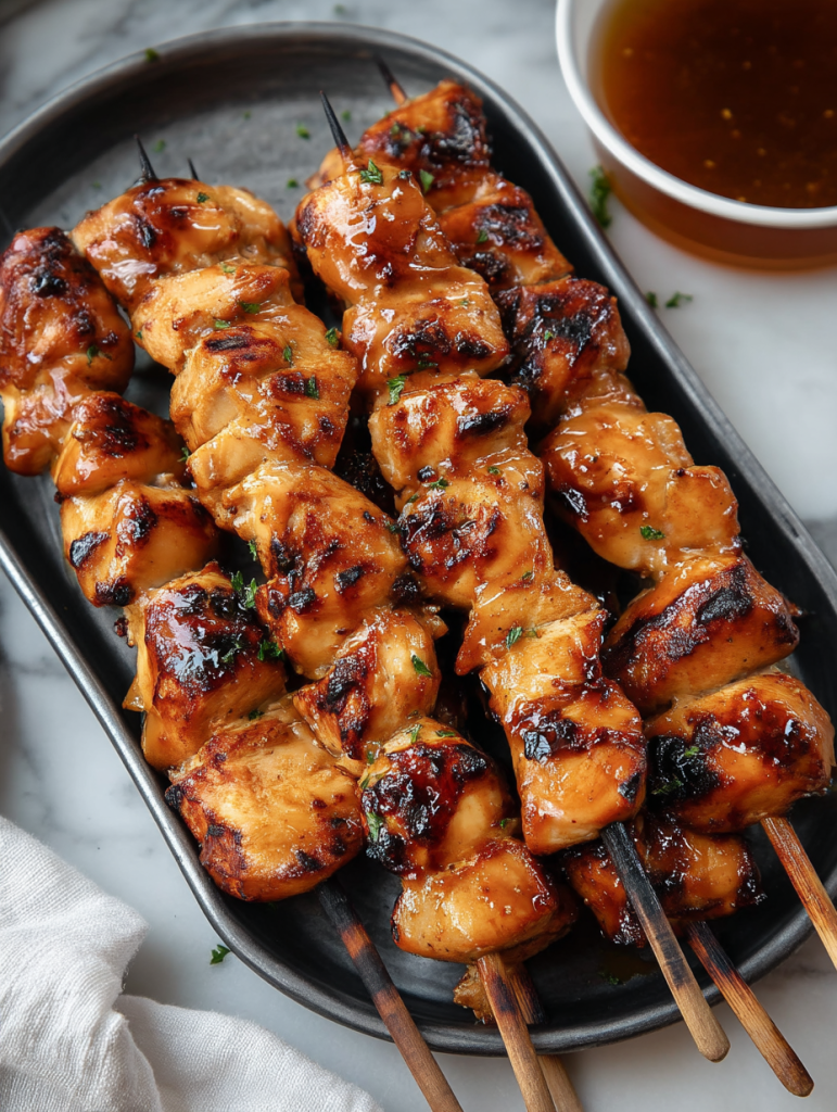 Keywords: grilled chicken skewers, bourbon chicken, summer grilling, quick dinner, easy recipe