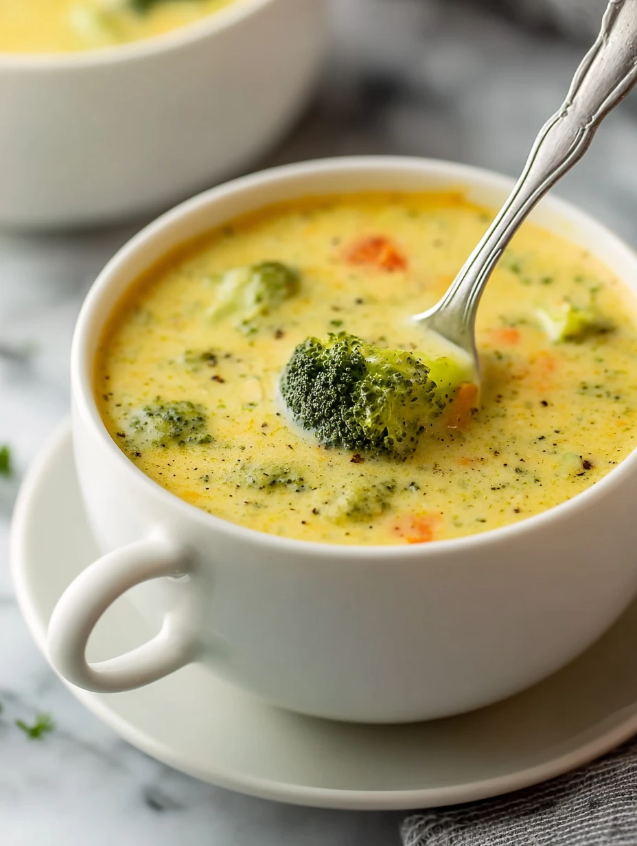 Keywords: broccoli cheddar soup, creamy soup, comfort food, easy soup recipe, healthy dinner ideas