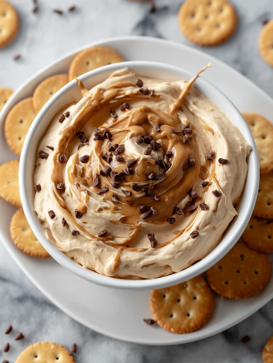 Think of it as a peanut butter cup in dip form. It’s silky-smooth, packed with rich peanut butter and cream cheese, and dotted with mini chocolate chips for that irresistible texture. Whether you’re scooping it up with pretzels, cookies, or apple slices, this dip delivers sweet satisfaction in every bite.