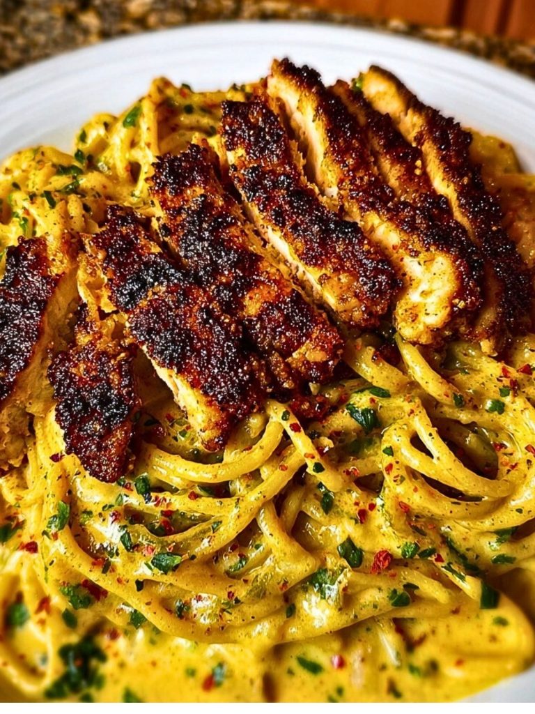 This indulgent pasta feeds up to 4 people comfortably and is perfect for a cozy family dinner or a flavorful weekend treat. Serve it hot, straight from the skillet, with the chicken sliced over the top for a show-stopping presentation.