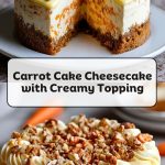 Combining the cozy spice of carrot cake with the rich smoothness of cheesecake, this Carrot Cake Cheesecake with Creamy Topping is the ultimate dessert for when you can’t decide between two favorites. A beautifully marbled center swirls the spiced carrot cake and cheesecake layers into one irresistible bite, crowned with a luscious creamy topping and a sprinkle of crunchy pecans.