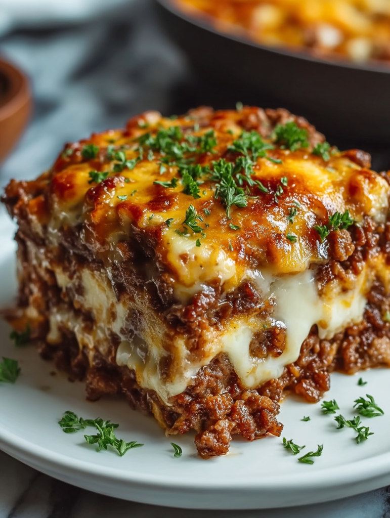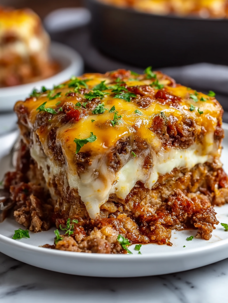 Keywords: cheesy meatloaf, comfort food, ground beef casserole, easy dinner, family meal