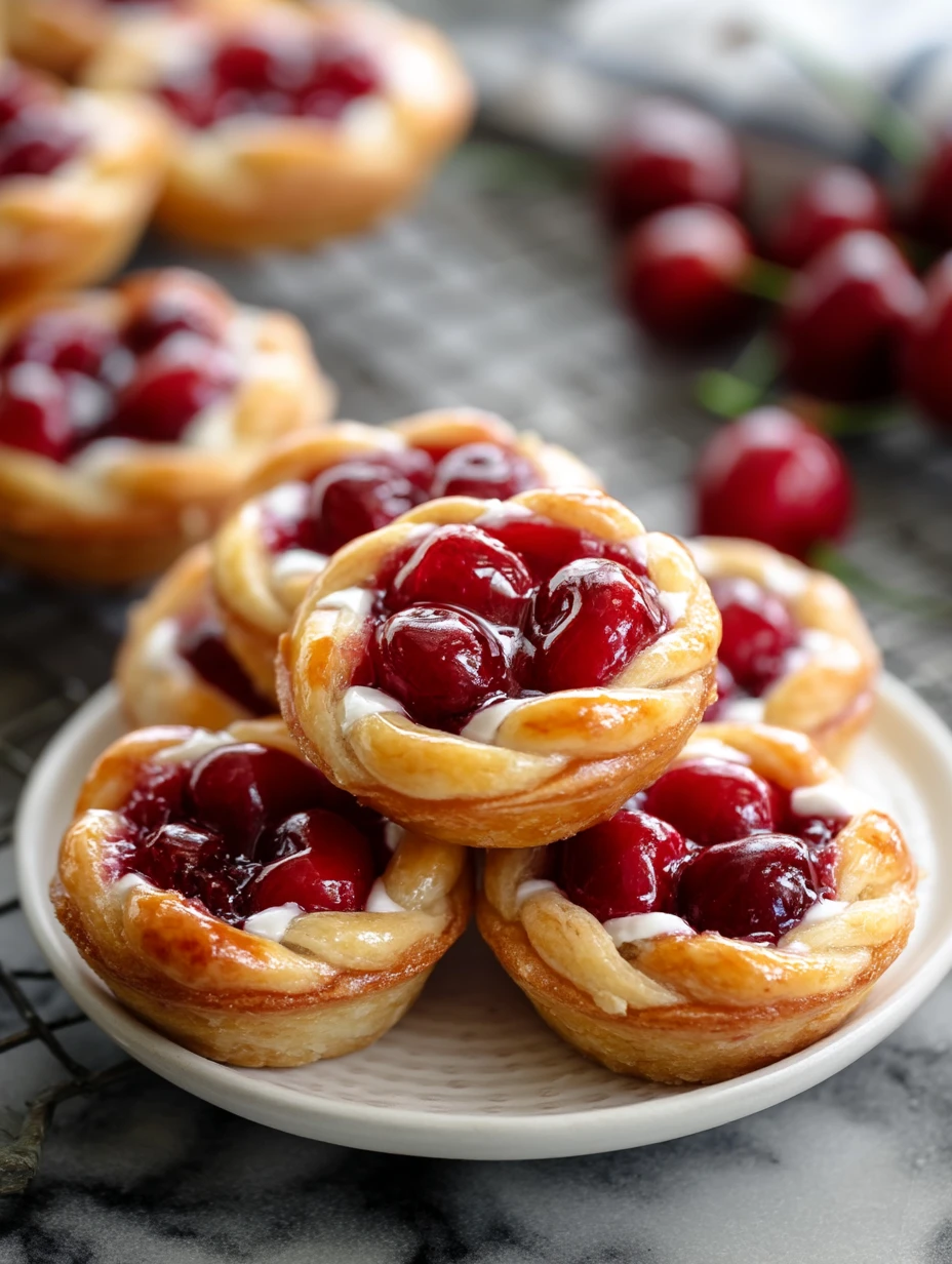 Do not overfill the pastry cups, or the cherry filling can bubble over and make the pastry soggy instead of light and flaky.