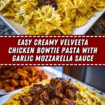 Easy Creamy Velveeta Chicken Bowtie Pasta with Garlic Mozzarella Sauce