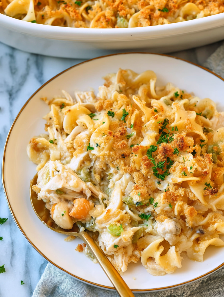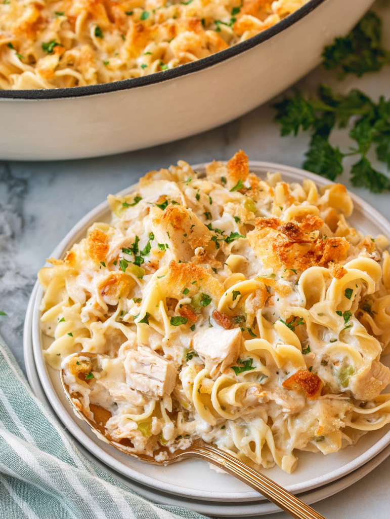 When comfort food calls, this Chicken Noodle Casserole answers with creamy sauce, tender noodles, and hearty chicken baked to golden, bubbly perfection. This dish has all the warmth of a childhood memory wrapped in a modern-day favorite. Whether you’re feeding a crowd or making dinner for the week, it’s the kind of recipe that hits the spot every time.