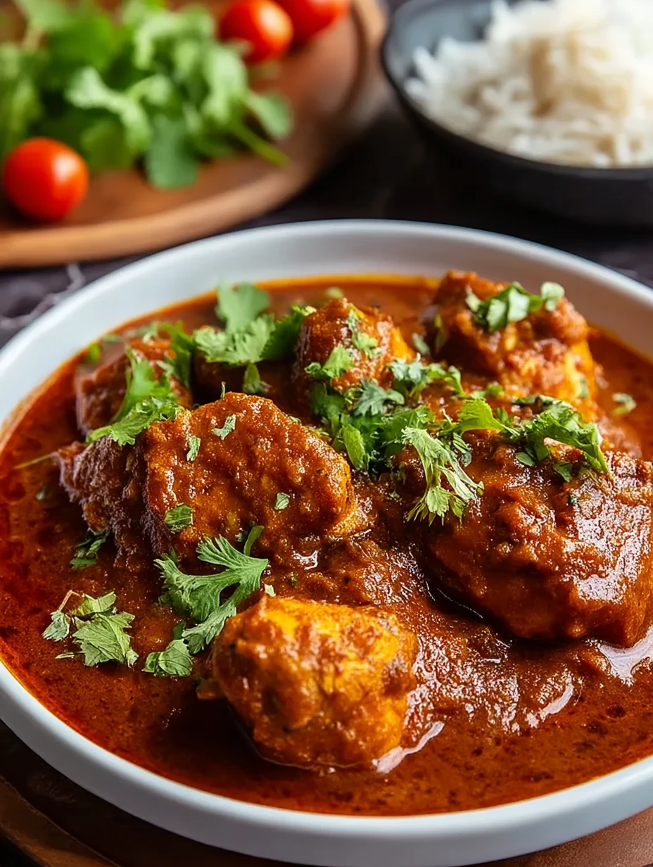 Fragrant, fiery, and full of flavor, Chicken Rogan Josh is a dish that brings the essence of Indian cuisine to your table. Traditionally made with lamb, this chicken variation is every bit as hearty and aromatic, with tender chicken pieces simmered in a richly spiced tomato-yogurt sauce that clings to each bite.