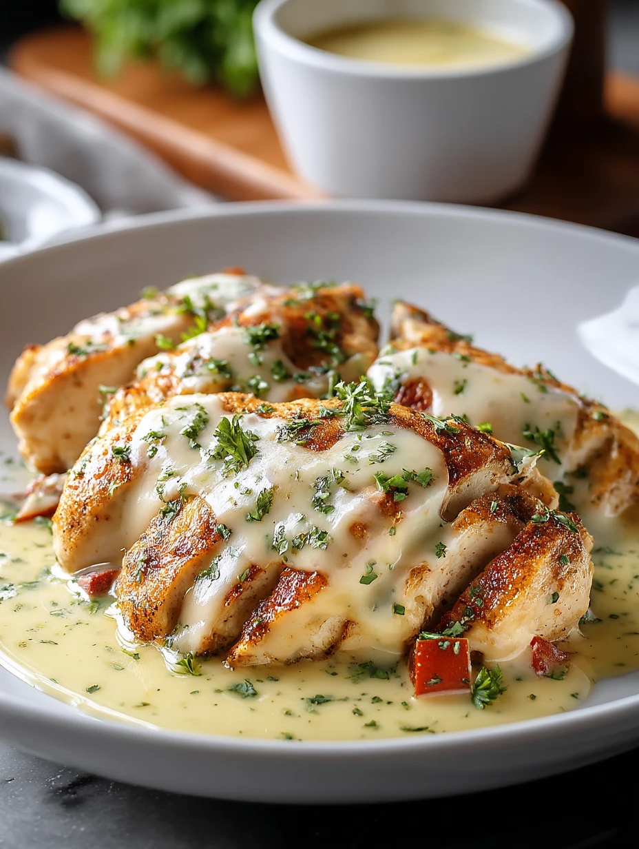 What makes this dish especially lovable is how easily it turns a simple chicken dinner into something that feels a little more special. The creamy cheese sauce clings to the chicken beautifully, while fresh herbs and sweet red pepper add color and flavor that keep every bite from feeling too heavy.