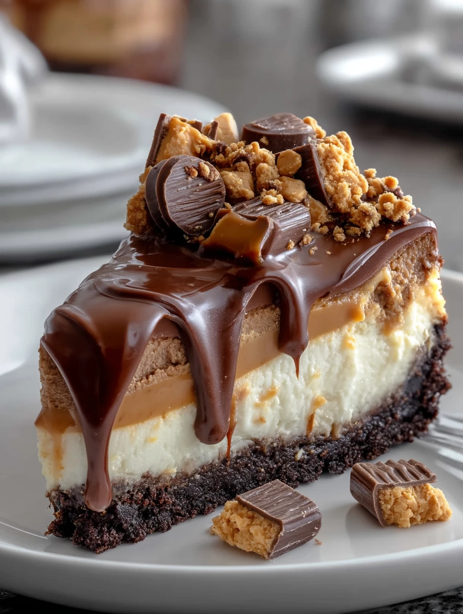 This cheesecake is made for anyone who wants a dessert that feels impressive without being overly complicated. The filling is luscious and velvety, the crust adds a deep chocolate base, and the topping brings extra drama with melted chocolate, peanut butter drizzle, and candy pieces if you want to go all in.