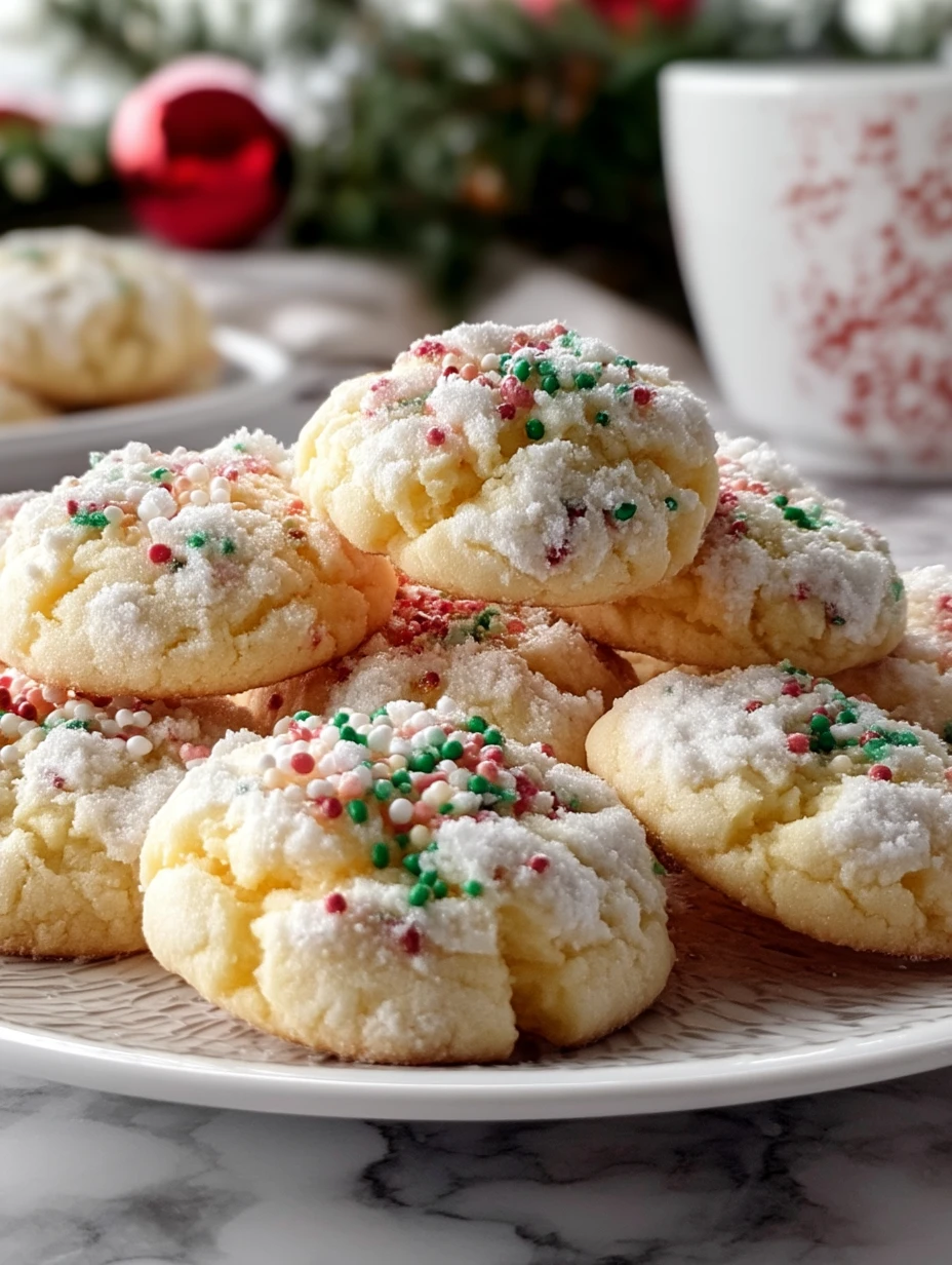 That contrast between the creamy cookie center and the sweet powdery coating is what makes this treat so irresistible. Add holiday sprinkles, and they instantly look ready for every Christmas table.
