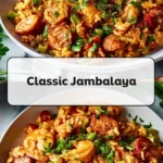 Classic Jambalaya is a bold, comforting one-pan dinner that brings together juicy chicken, smoky sausage, tender shrimp, and seasoned rice in every flavorful bite. This easy recipe is perfect for a quick dinner, easy dinner, family meal, and cozy weekend cooking when you want satisfying food ideas without making multiple dishes. Packed with Cajun-inspired flavor, colorful vegetables, and hearty protein, it is one of those dinner ideas that feels special while still being simple enough for busy nights.