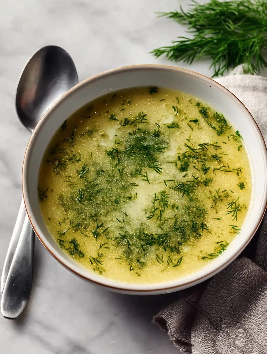 Ladle the soup into warm bowls and finish with an extra sprinkle of dill, a crack of black pepper, and a drizzle of good olive oil if you like.