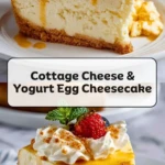 Creamy, tangy, and refreshingly light, this Cottage Cheese & Yogurt Egg Cheesecake is your new go-to dessert. Packed with protein and subtly sweetened with honey or maple syrup, it’s a healthy twist on classic cheesecake. The combination of cottage cheese and Greek yogurt creates an incredibly smooth texture without the need for heavy cream. Ideal for those seeking a guilt-free indulgence that still tastes rich and satisfying. Perfect for breakfast ideas, healthy snacks, easy dinner desserts, or anytime you’re craving a wholesome, easy recipe that fits your food ideas list!