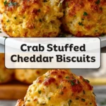 Golden, cheesy, and irresistibly gooey, these Crab Stuffed Cheddar Biscuits are a dream come true for seafood lovers. Imagine warm, fluffy biscuits packed with tender crab meat, rich cheddar cheese, and a kiss of garlic butter. Every bite delivers a savory explosion that melts in your mouth with a hint of herbaceous brightness from fresh parsley.