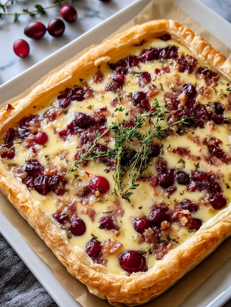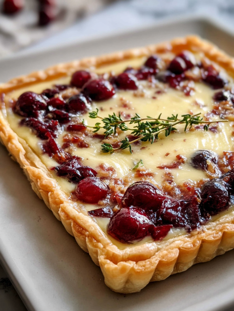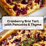 Flaky puff pastry, creamy brie, tangy cranberry sauce, and crisped pancetta come together in this show-stopping Cranberry Brie Tart with Pancetta & Thyme. It’s a brilliant fusion of sweet, savory, and herbal elements wrapped in golden, buttery layers. Whether you’re looking for a festive appetizer or a cozy Sunday treat, this tart delivers bold flavor with minimal effort.