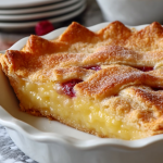 Golden, flaky, and just the right balance of crisp and gooey, this Crazy Crust Pie is unlike any dessert you’ve made before. With a buttery top that forms its own crust as it bakes, this pie wraps a creamy vanilla filling and sweet berry jam into one effortless bite. It looks fancy but comes together in a flash, making it perfect for weeknights or impromptu gatherings.