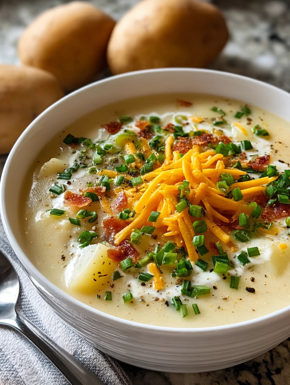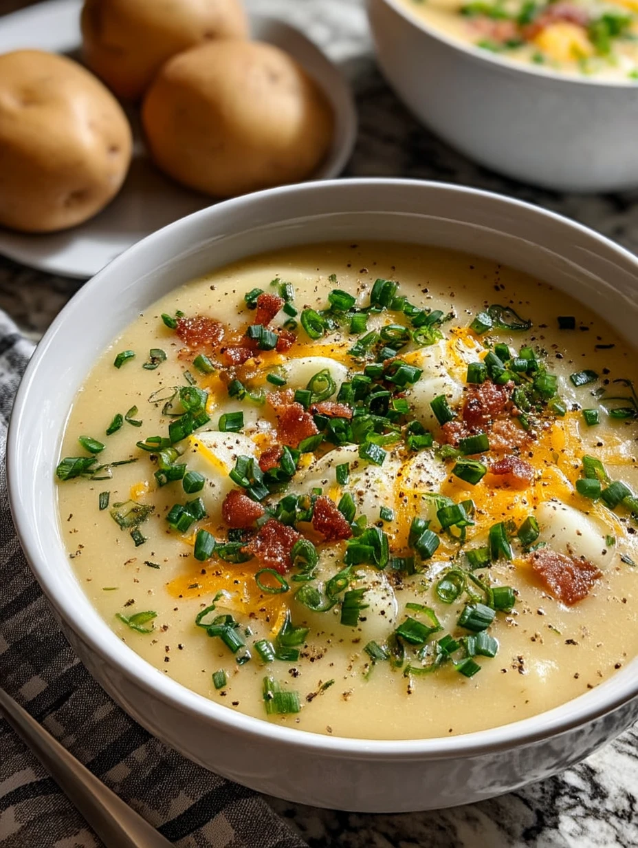 - Baked Potatoes – These are the star of the show. Their soft, fluffy interior creates a rich texture that melds perfectly into the creamy broth.