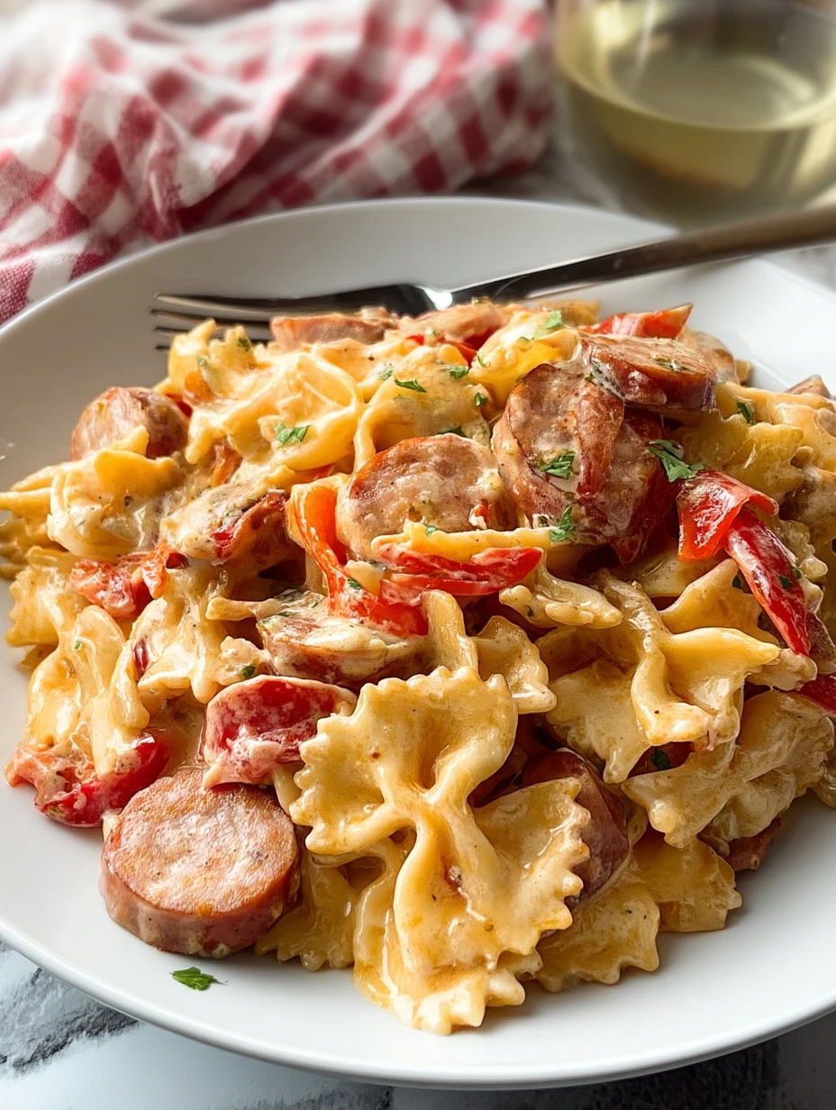 This Creamy Cajun Sausage Pasta Dinner is everything a comfort meal should be: bold, spicy, creamy, and incredibly satisfying. Loaded with smoky sausage, perfectly cooked bowtie pasta, and a rich, cheesy Cajun sauce that clings to every bite, it’s a weeknight dinner hero you didn’t know you needed.
