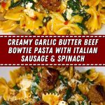 Creamy Garlic Butter Beef Bowtie Pasta with Italian Sausage & Spinach
