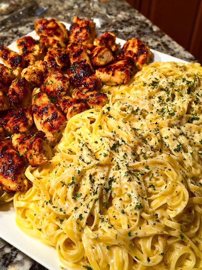 Creamy, garlicky, and utterly indulgent—this Garlic Butter Chicken with Linguine in Alfredo Sauce is the ultimate comfort food. It combines tender, golden-seared chicken pieces with rich, homemade Alfredo sauce and perfectly cooked linguine for a dish that satisfies both heart and soul.
