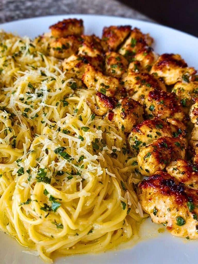 Need a cozy and satisfying dinner that everyone will rave about? This Creamy Garlic Parmesan Chicken with Cheesy Spaghetti combines juicy golden chicken bites in a rich garlic-Parmesan sauce with a side of buttery, cheesy spaghetti. It’s the perfect comfort food for quick weeknight meals or indulgent weekend dinners. If you’re looking for food ideas that are filling, flavorful, and family-approved, this easy recipe will not disappoint. Whether you want quick dinner ideas, easy pasta recipes, or a satisfying meal that feels like a restaurant dish—this one checks all the boxes.