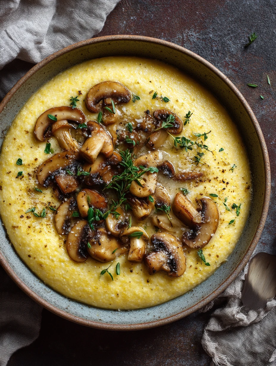 This recipe is more than just comfort food—it’s weeknight-friendly and full of nutrient-dense ingredients. The creamy base of polenta is made luxurious with just a touch of butter and cheese, while the garlic brings aromatic warmth to the dish. The mushrooms—golden and caramelized—elevate every bite with their bold, savory character.