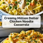 Get ready to fall in love with this Creamy Million Dollar Chicken Noodle Casserole. It’s everything a cozy dinner should be: creamy, cheesy, and packed with tender noodles, shredded chicken, and comforting flavors. A mix of cream cheese, sour cream, and cheddar cheese brings the “million dollar” richness that makes this dish unforgettable. Whether you’re after a quick dinner, meal prep idea, or just hearty food inspiration, this easy recipe fits the bill. Perfect for busy nights, comforting family meals, or when you just need something satisfying.