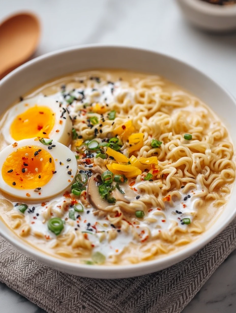 This creamy ramen recipe is fast, flexible, and utterly delicious. You can keep it simple with a few ingredients or upgrade it with proteins and vegetables. It transforms instant noodles into a gourmet-level meal without the extra work.