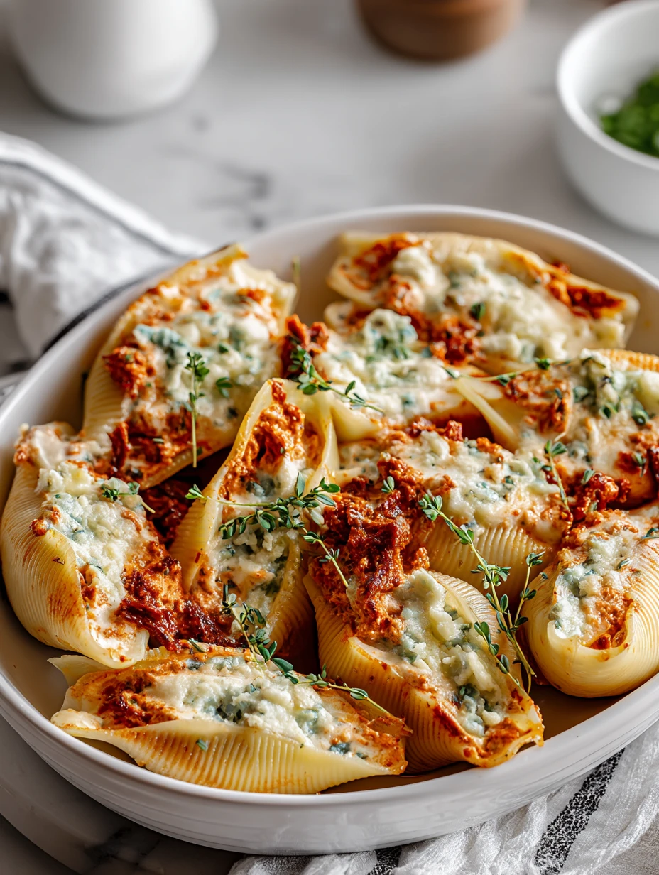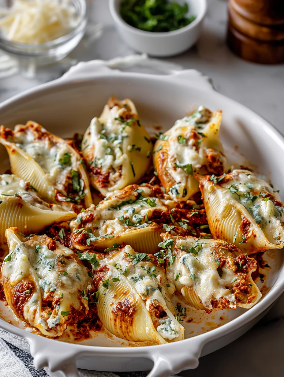 There is something especially comforting about a bubbling dish of stuffed pasta pulled straight from the oven, and these Creamy Sun-Dried Tomato and Ricotta Stuffed Shells deliver that cozy feeling in the best possible way. Each shell is packed with a creamy ricotta filling, layered with the bold tang of sun-dried tomatoes, and baked until the cheese turns melty and golden.