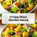 There is something about a big restaurant-style salad that feels instantly inviting, and this Crispy Olive Garden Salad brings that same fresh, colorful crunch right to your table. With crisp romaine, juicy tomatoes, tangy pepperoncini, briny black olives, red onion, plenty of Parmesan, and golden croutons all coated in a creamy Italian-style dressing, every bite is lively, cool, and full of texture.