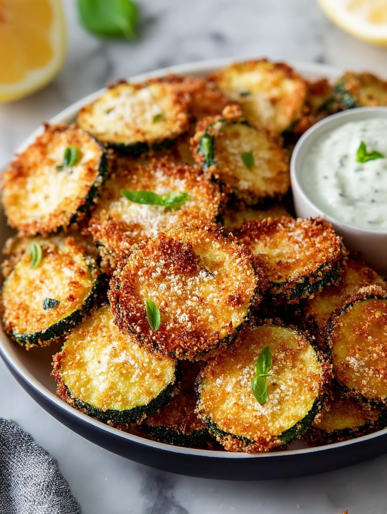 Get ready for a snack that’s light, crispy, and totally addictive. These Crispy Zucchini Chips with Basil Mayo are the perfect guilt-free way to satisfy your fried food cravings. Thin zucchini rounds are coated in a savory parmesan and panko mix, then cooked until golden perfection—air fried, baked, or pan-fried to suit your mood. Served alongside a creamy garlic-basil mayo, this easy recipe is ideal for quick appetizers, healthy snacks, or dinner ideas when you want something fun and flavorful. Whether you’re looking for food ideas that impress or a quick crowd-pleaser, this one’s a winner!