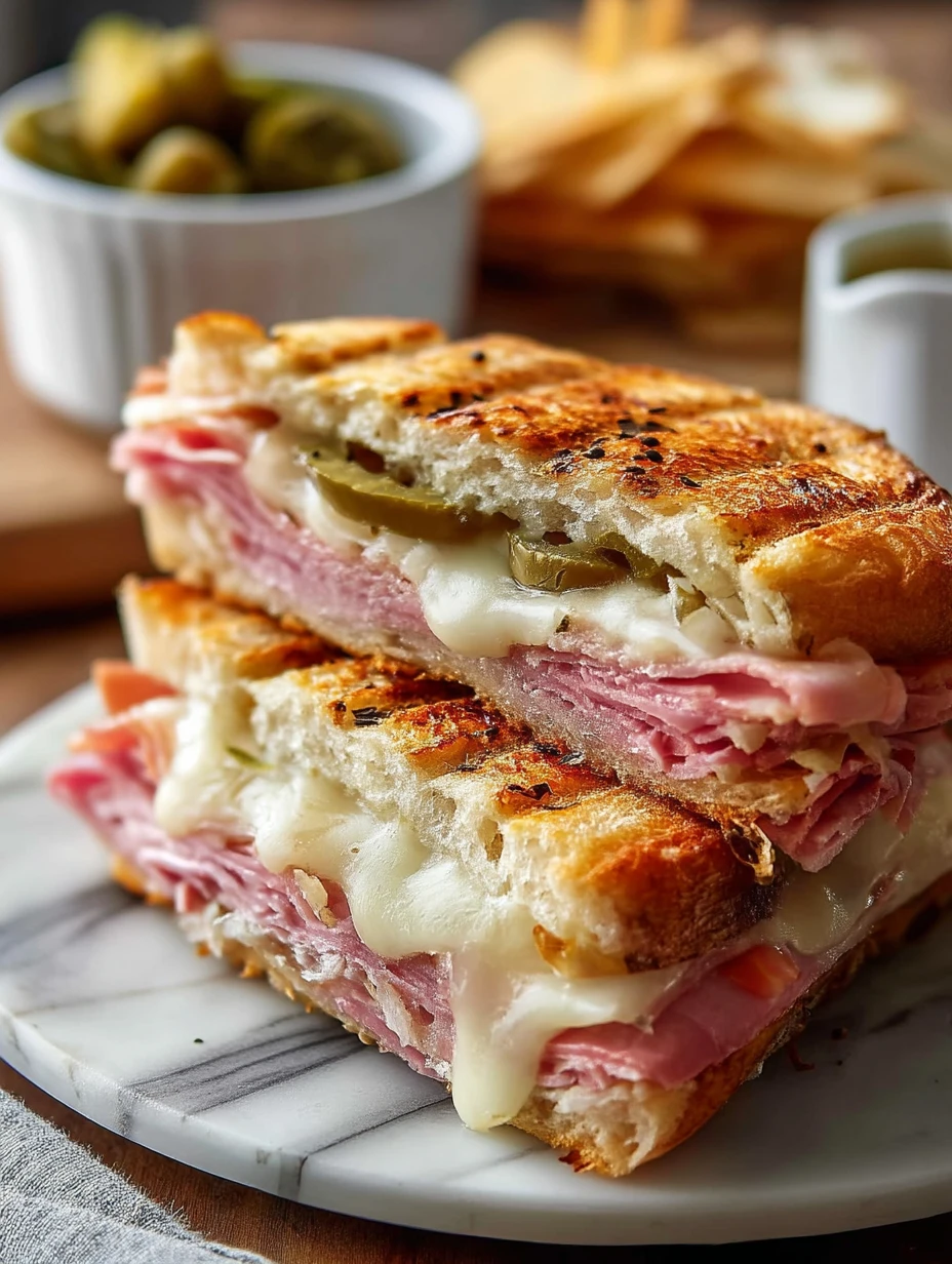 Few sandwiches deliver comfort and crunch quite like a Cuban Sandwich Cubano. With layers of savory ham, tender roast pork, melty Swiss cheese, tangy pickles, and a swipe of mustard pressed between crisp golden bread, every bite feels bold, warm, and deeply satisfying.