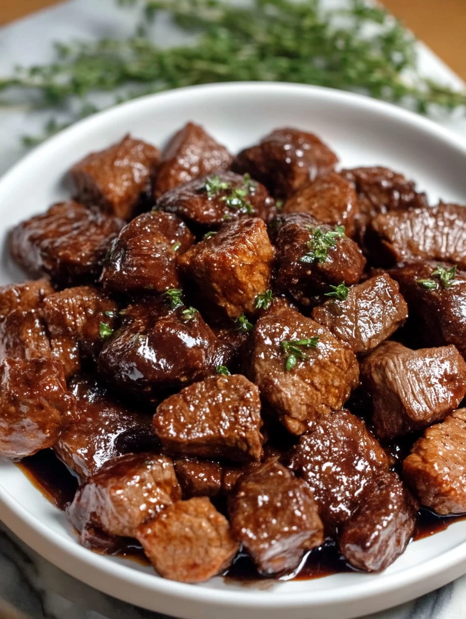 To serve, spoon the steak bites over creamy mashed potatoes, buttery noodles, fluffy rice, or even toasted bread that can soak up the sauce. For storing, let the steak cool before transferring it to an airtight container. Refrigerate for up to 4 days. Reheat gently on the stovetop or in the microwave with a splash of broth if needed to loosen the sauce. You can also freeze it for up to 2 months, though the texture is best when enjoyed fresh or within a few days.