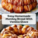 Sticky, sweet, and dripping with vanilla glaze, this Easy Homemade Monkey Bread With Vanilla Glaze is the kind of pull-apart treat that disappears in minutes. Whether you call it monkey bread, bubble bread, or pull-apart bread, this nostalgic favorite brings joy to every table it graces.