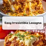 Turn any dinner into a comforting celebration with this Easy Irresistible Lasagna. Packed with layers of savory ground beef, creamy ricotta, melty mozzarella, and rich marinara sauce, this crowd-pleasing dish is a classic for good reason. It’s a perfect pick for easy dinner nights, meal prep, potlucks, and family gatherings. Whether you’re after quick dinner ideas, hearty food ideas, or a satisfying comfort meal, this easy recipe delivers with bold Italian flavors and cheesy goodness in every bite. Great for those seeking easy dinner recipes that impress without the stress.