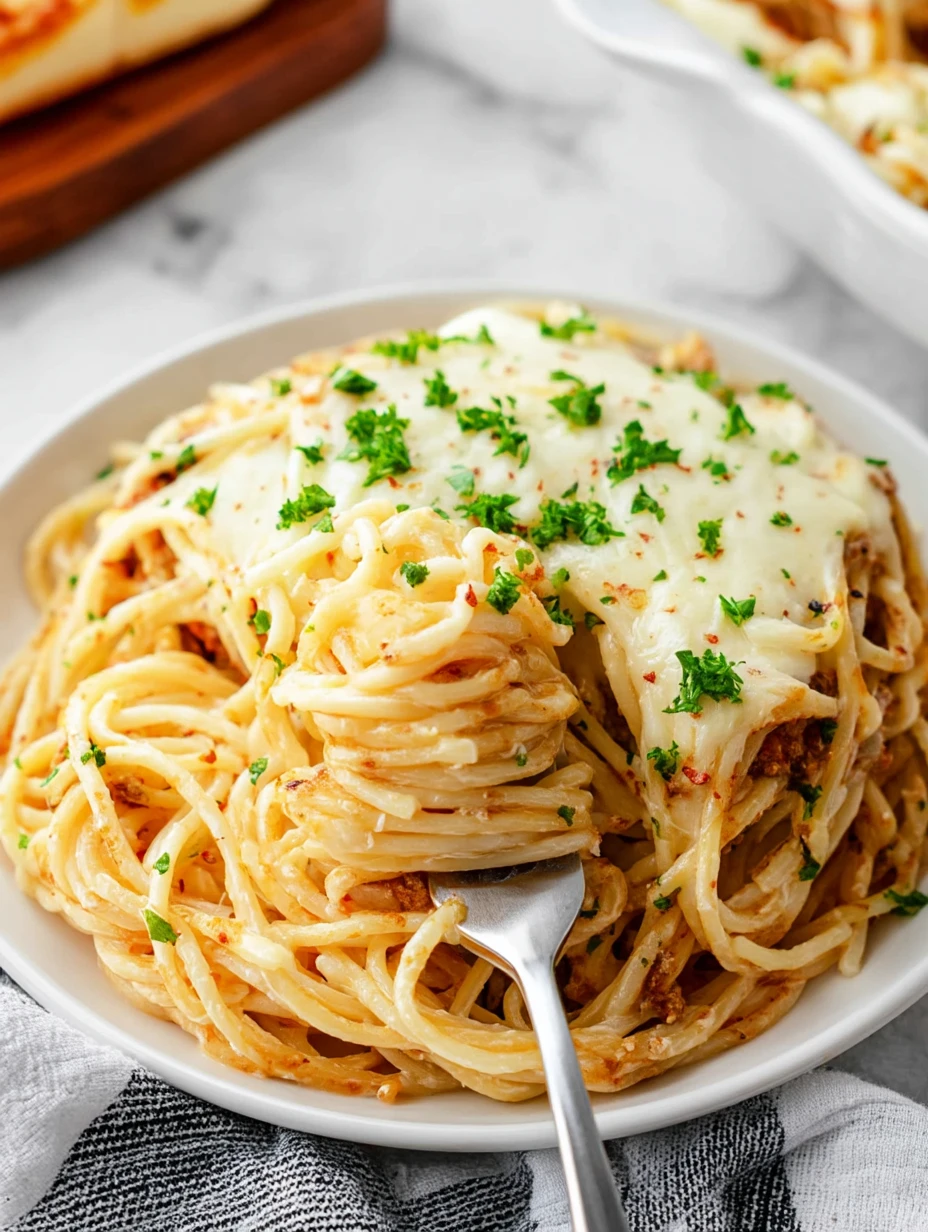 Inspired by the viral TikTok trend, this recipe brings together tender spaghetti, rich Alfredo sauce, savory ground beef, and a golden topping of melted mozzarella. It’s simple enough for a weeknight but indulgent enough to serve to guests—a true family-favorite pasta bake.