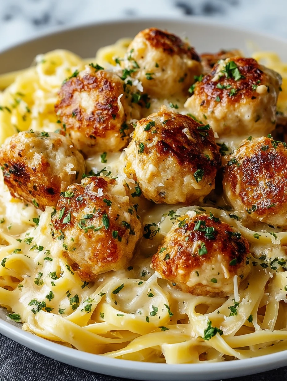 Garlic Butter Chicken Balls with Creamy Parmesan Pasta