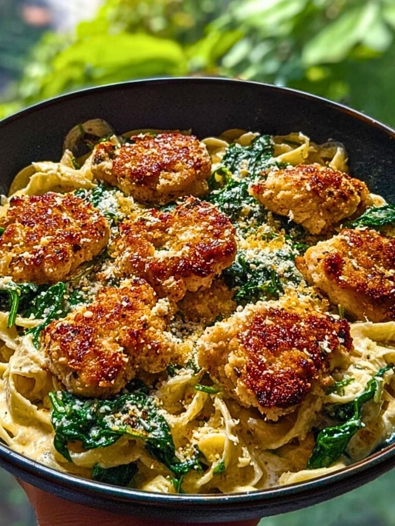 This dish doesn’t just feed the appetite, it satisfies the soul. With its creamy texture, pops of spinach and artichoke, and golden-crusted chicken bites on top, this is the kind of meal that transforms a regular night into something special. Ideal for weeknights or cozy weekend dinners, it’s simple enough to pull together but impressive enough to serve to guests.