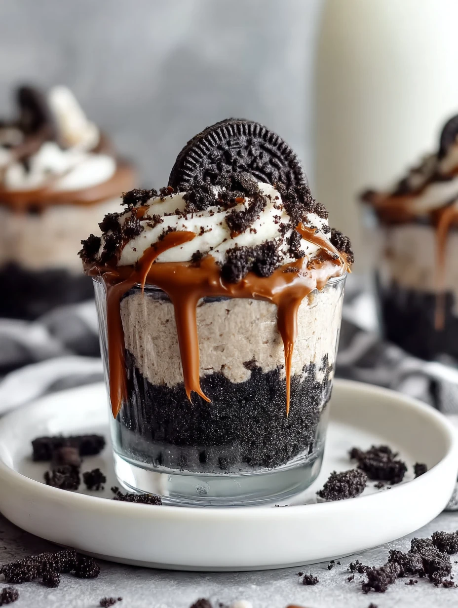 The layers are simple but rich, creating that “wow” effect both visually and on your tastebuds. Kids love helping to assemble them, and adults love the nostalgic flavor of cookies and cream meets peanut butter bliss.
