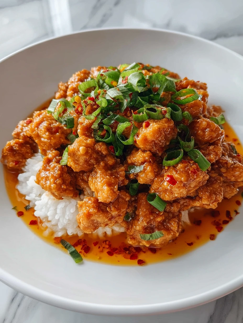 Spoon the ground orange chicken over warm cooked white rice. Garnish with extra green onions (and sesame seeds, if you like) for a fresh, crisp finish. Grab a fork—or chopsticks—and dig in while it’s hot and saucy.