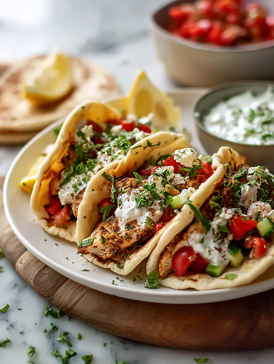 The freshness comes from layering bold yet clean ingredients instead of relying on anything overly rich. Lemon juice, olive oil, crunchy cucumber, juicy tomatoes, and chopped herbs all lift the chicken and give the tacos that unmistakable Mediterranean feel.