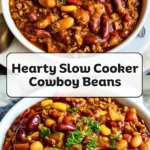 Warm up with this irresistible bowl of Hearty Slow Cooker Cowboy Beans! A bold and comforting mix of ground beef, kidney beans, pinto beans, and great northern beans, all slow-cooked with tangy tomato sauce, smoky BBQ flavors, and a touch of sweetness. This easy recipe is perfect for busy days, potlucks, or when you just want something hearty and homemade. Whether you’re looking for a quick dinner idea, a freezer-friendly meal, or cozy food ideas to feed a crowd, this dish ticks every box. It’s one of those easy recipes that’ll quickly earn a spot in your regular rotation—no fuss, all flavor!